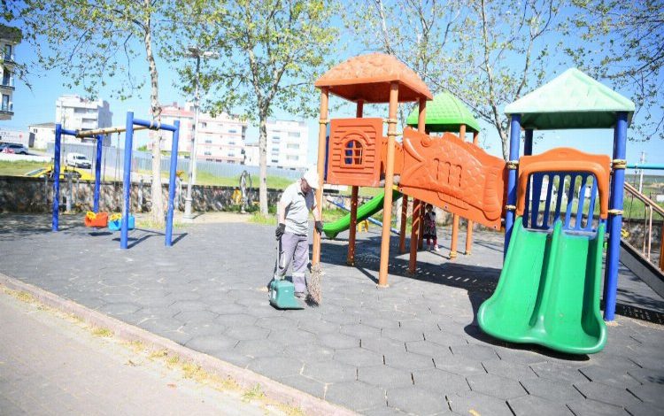 Çayırova’daki parklarda temizlik çalışmaları sürüyor