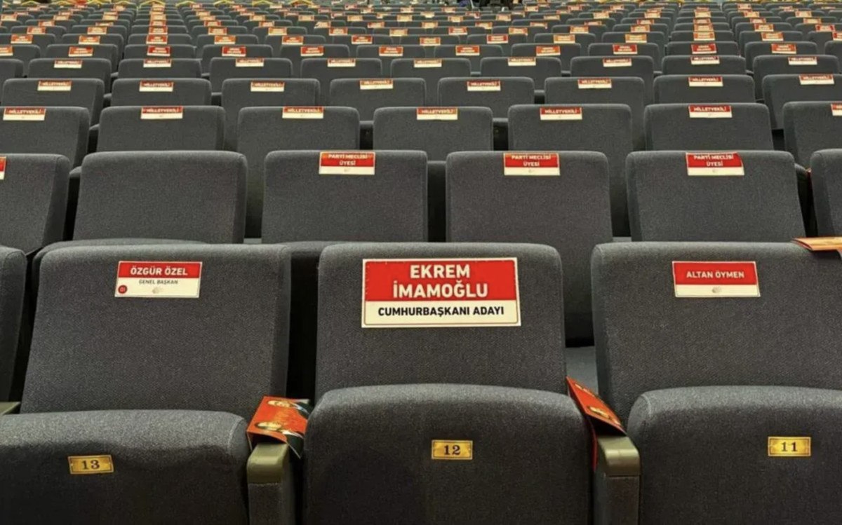 Tutuklanan ve vazifeden alınan Ekrem İmamoğlu için kurultay salonunda sembolik koltuk ayrılmıştı.