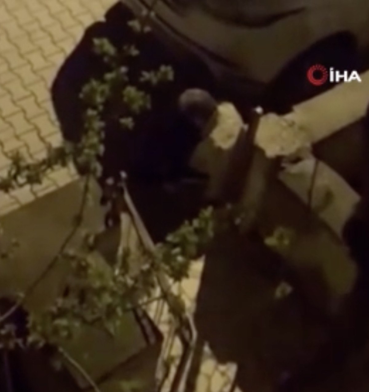 O anlar ise, balkondaki kişi cep telefonu kamerası ile kaydetti.