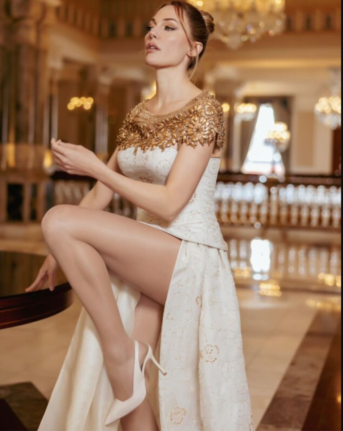Şakir Paşa Ailesi’nin Rozali’si Meryem Uzerli Çırağan Sarayı’nda! Yırtmaçlı pozlarına beğeni yağdı