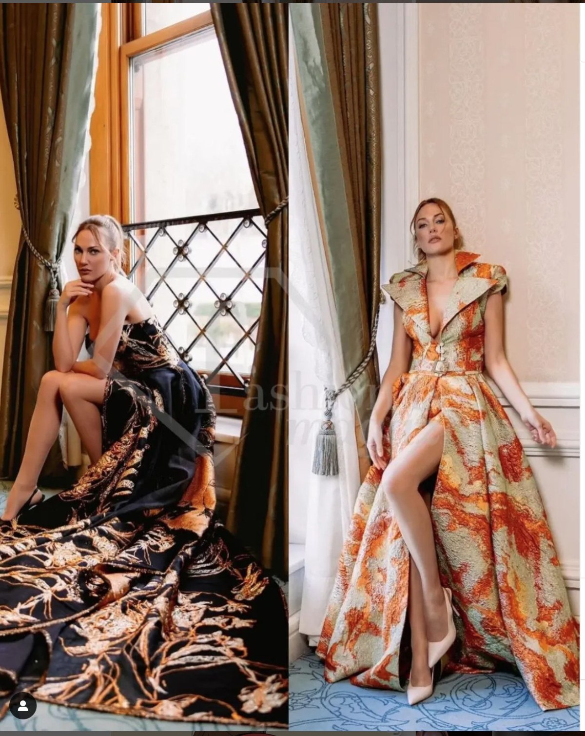 Arkadaşının Haute Couture Koleksiyonu için çeşitli kıyafetler giyen ve cesaretli pozlara imza atan Uzerli’ye beğeni yağdı.