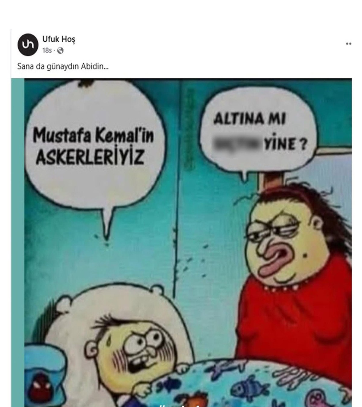 Paylaşımı okuyan Çebi “Atatürk’e hakaret edemezsin” ifadelerini kullandı.