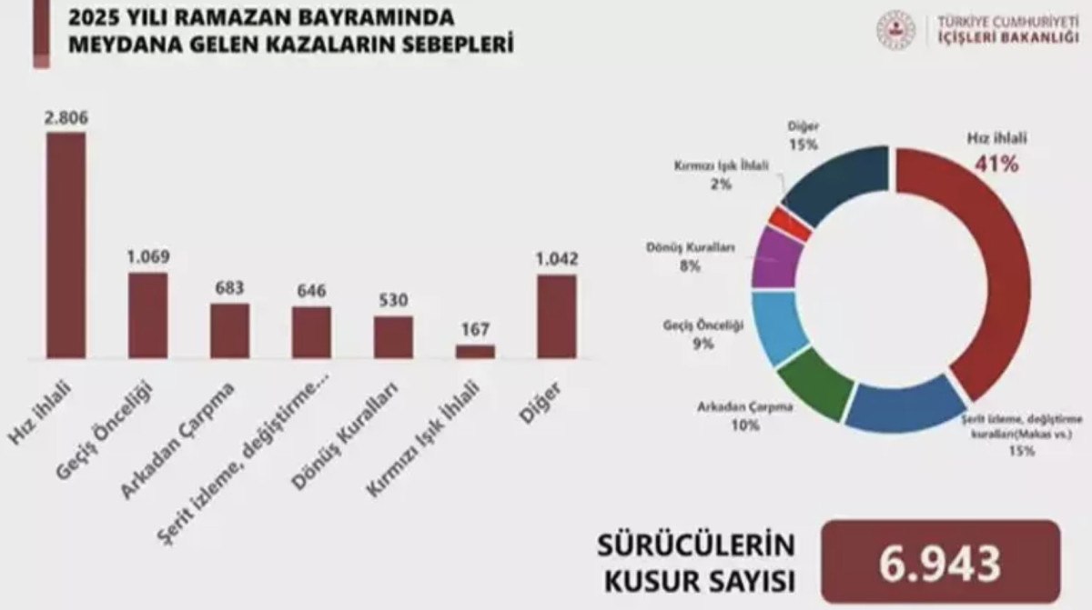 Evet, maalesef bu bayram tatilinde: her gün 8 canımızı yollarda yitirdik. Her gün bir kentimize kara haber düştü. Pekala neydi bu kazaların nedenleri? Yeniden en başta “aşırı sürat geliyor.” 6 bin 268 kazanın %41’i ‘’hız ihlalinden’’ kaynaklandı. 74 canımızın 44’ünü ‘’aşırı hızdan’’ kaybettik. Başka sebepler ortasında ise: ‘’geçiş önceliği ihlali’’, ‘’arkadan çarpma’’, ‘’şerit ihlali’’, ‘’dönüş kuralları’’ ve ‘’kırmızı ışıkta geçmek’’ üzere temel trafik kurallarına uymamak var.