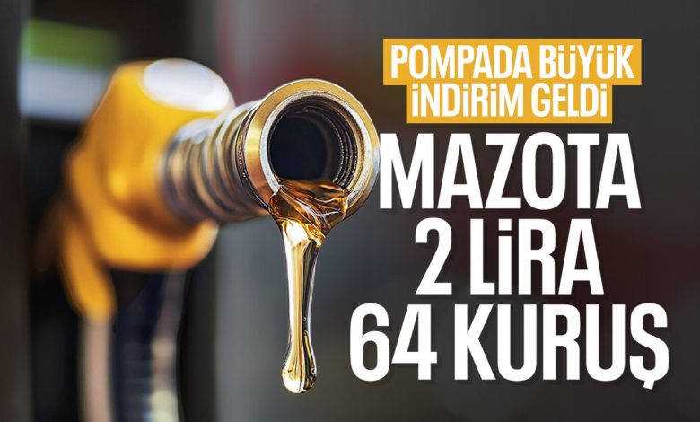 Motorinin litre fiyatına bu geceden geçerli olmak üzere 2 lira 64 kuruş indirim bekleniyor.