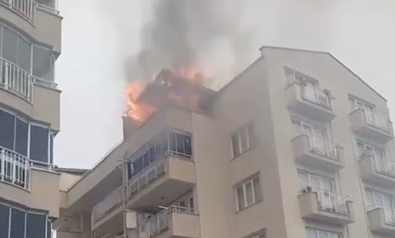 Bursa’nın Nilüfer ilçesindeki 5 katlı apartmanın çatı katında şimdi belirlenemeyen bir nedenle yangın çıktı.