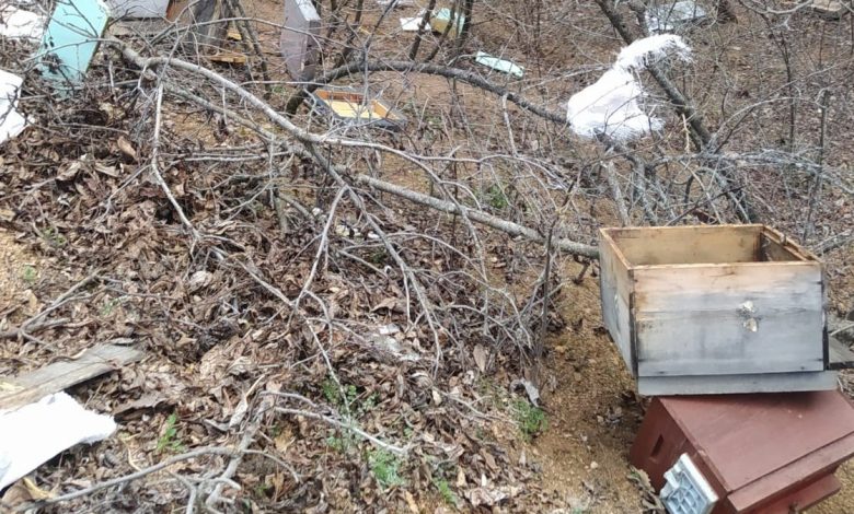 Rüzgar çok şiddetliydi. Bulundukları yerden metrelerce uzağa sürüklemiş kovanları. Birçoğu kullanılamaz hale geldi. Arılı kovanları da toparladım ancak hepsi yağma nedeniyle telef olacak zati.