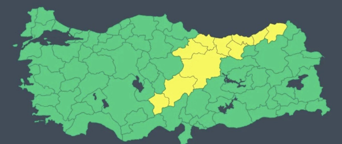 Artvin, Giresun, Gümüşhane, Kayseri, Niğde, Ordu, Rize, Sivas, Tokat ve Trabzon için sarı kodlu ikaz verildi.