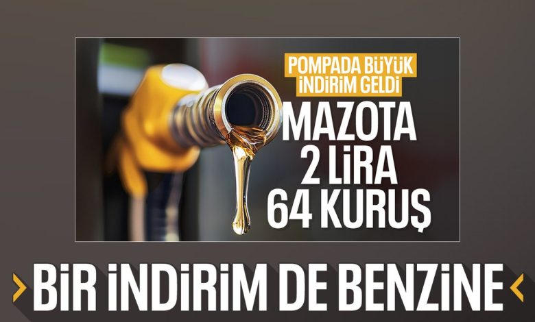 Motorinin litre fiyatı, 2 lira 64 kuruş birden düştü.