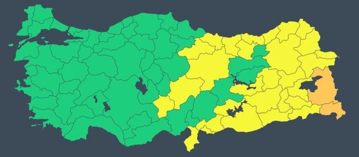 Sarı kodlu ihtar verilen vilayetler ise şu formda: