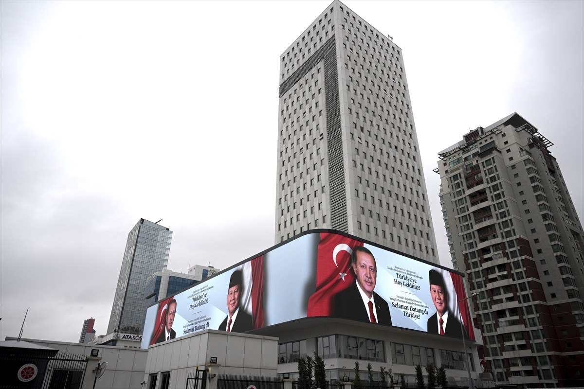 İletişim Başkanlığı binasının dijital gösterim ekranında yayınlanan ve Cumhurbaşkanı Recep Tayyip Erdoğan ile Endonezya Cumhurbaşkanı Subianto’nun fotoğraflarının bulunduğu Türkçe ve Endonezce iletide, “Endonezya Cumhuriyeti Cumhurbaşkanı Sayın Prabowo Subianto, Türkiye’ye hoşgeldiniz” sözleri yer aldı.