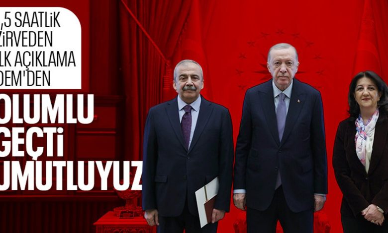 Önder, gelinen noktayı Cumhurbaşkanı Erdoğan’a arz edeceklerini belirterek, “Hem kendi görüş ve tekliflerini hem de biz kendi tekliflerimizi paylaşacağız. İnanıyoruz ki hem demokratik siyaset alanı hem barış ve buna dair faaliyetler bundan sonra çok daha süratli ve nitelikli adımlarla devam edecektir.” diye konuştu.