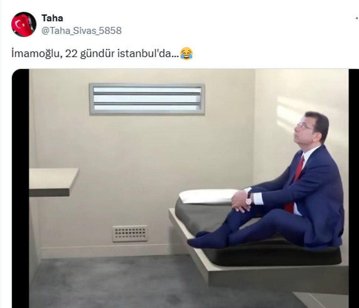 İstanbul’da kar fırtınasından sel felaketine her kriz anında kent dışında olmasıyla bilinen İmamoğlu’nun 22 gündür Silivri’deki Marmara Cezaevi’nde bulunduğu hatırlatan X kullanıcısı tebessüme neden oldu.