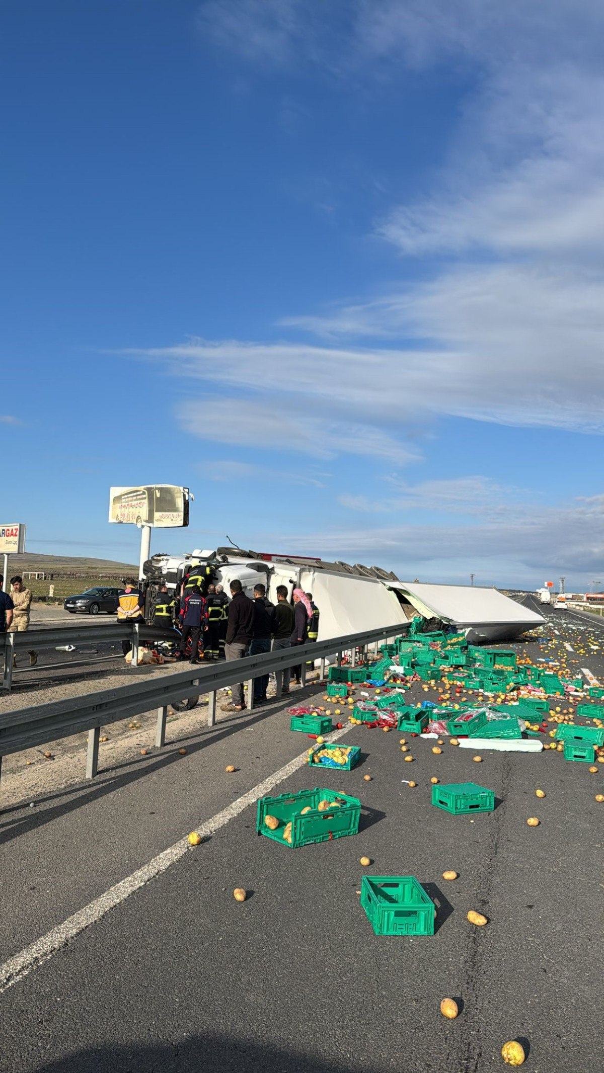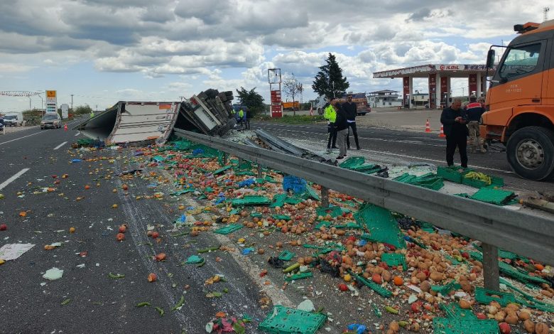 Kamyon dorsesinden yola savrulan sebzelerin toplanmasının akabinde trafik tek şeritli olarak denetimli formda sağlandı.