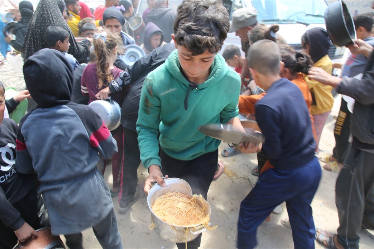 Bir hayır kurumu tarafından, Gazze kentinin doğusundaki Şucaiyye Mahallesi’ndeki Filistinlilere, sıcak yemek dağıtımı yaptı.