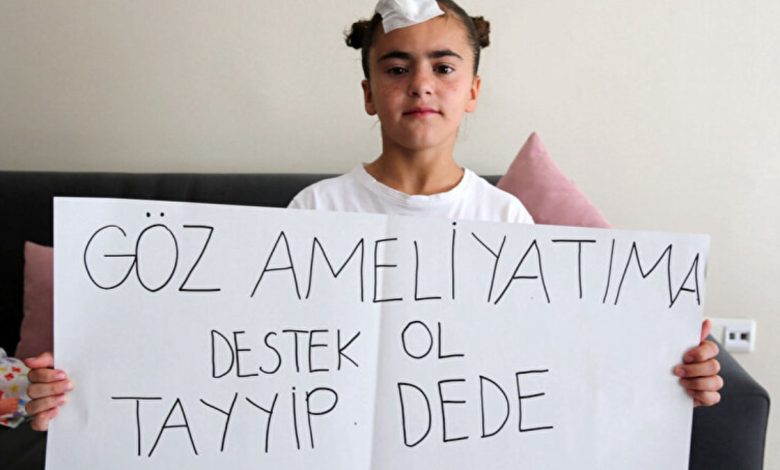Yaklaşık 7 yıl evvel geçirdiği kaza sonrası gözünde kayma meydana gelen 10 yaşındaki Ada Koçyiğit “Göz ameliyatıma takviye ol Tayyip dede” yazılı pankartla Cumhurbaşkanı Recep Tayyip Erdoğan’dan yardım istedi.