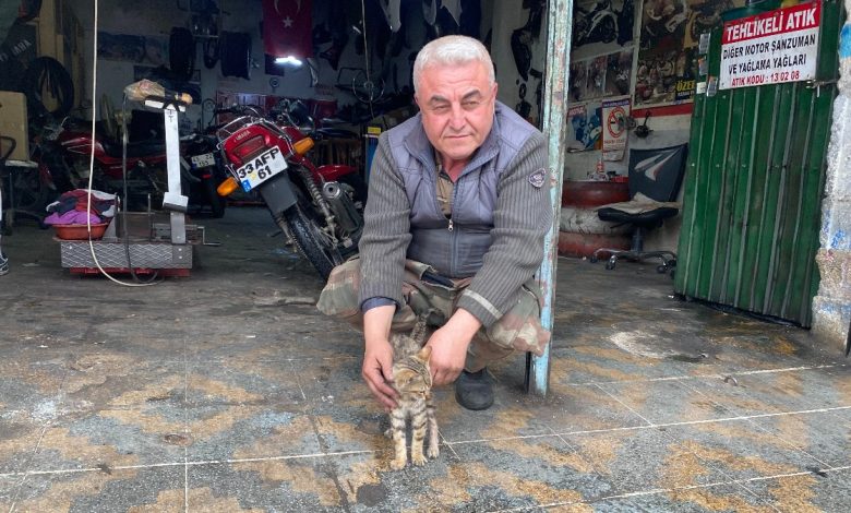 Manisa’nın Alaşehir ilçesinde motosiklet tamirciliği yapan İbrahim Aydın, iş yerine giren yaralı kediyi görünce vakit kaybetmeden veterinere götürdü.