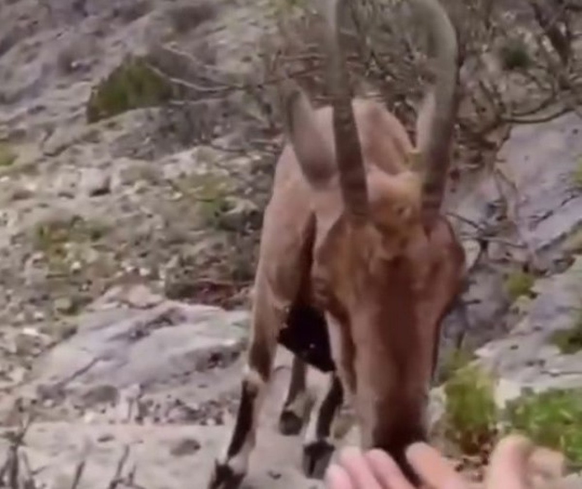 Yozgat’ta tabiata salınan yaban keçisiyle vatandaşın diyaloğu