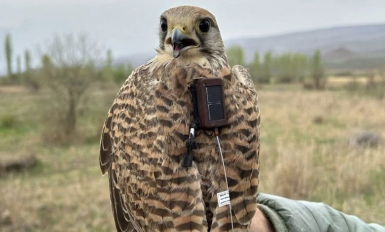 Genellikle yırtıcı cinslerin uydudan izlendiği çalışmalar kapsamında bu kere, ağlara takılan kerkeneze (Falco tinnunculus) uydu verici takıldı ve doğal ortamına saldı.