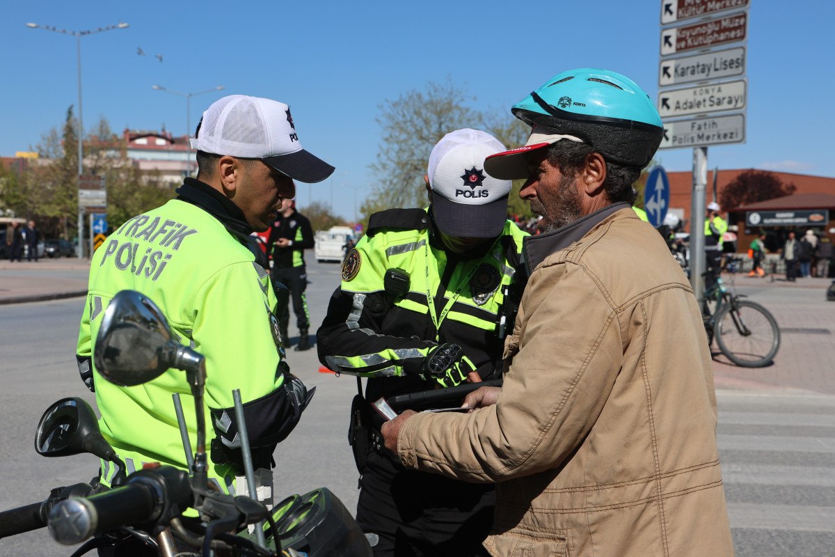 Konya’da motosiklet şoförlerine yönelik kontrol: Kaskımı çaldılar