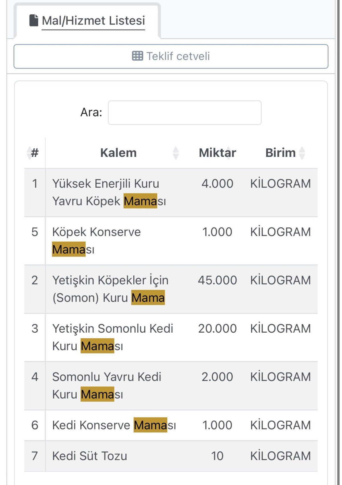 73 BİN KİLOGRAM MAMA ALINACAK