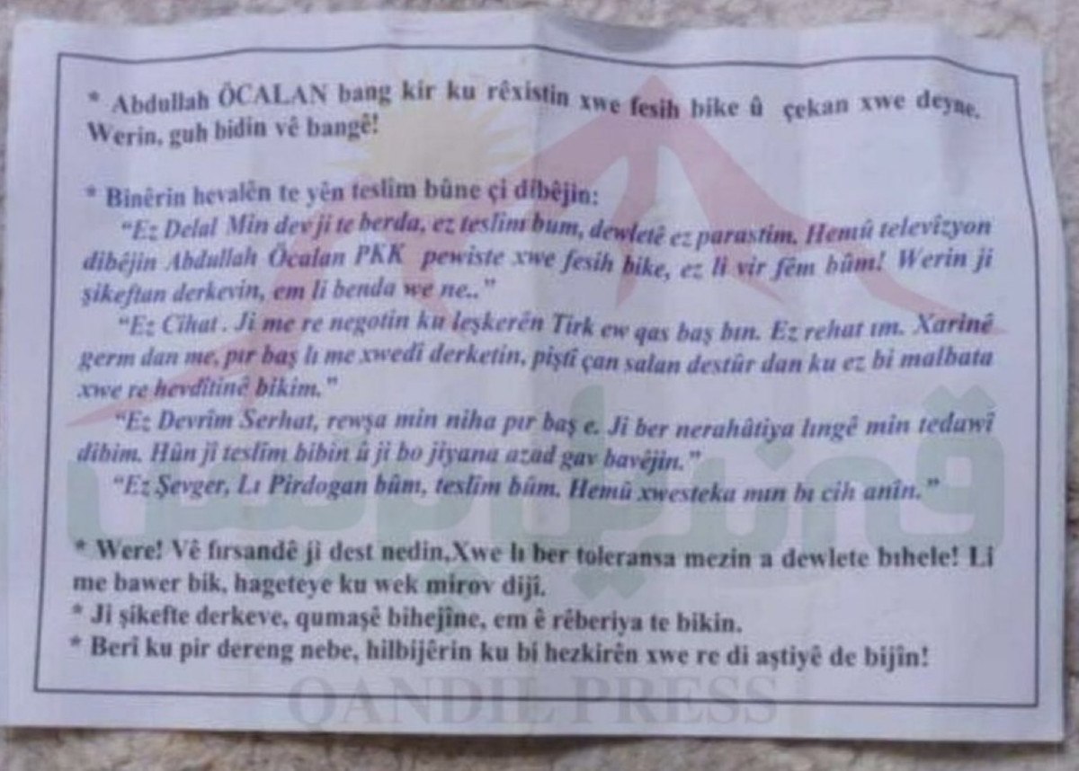 KÜRTÇE BİLDİRİ DAĞITILDI