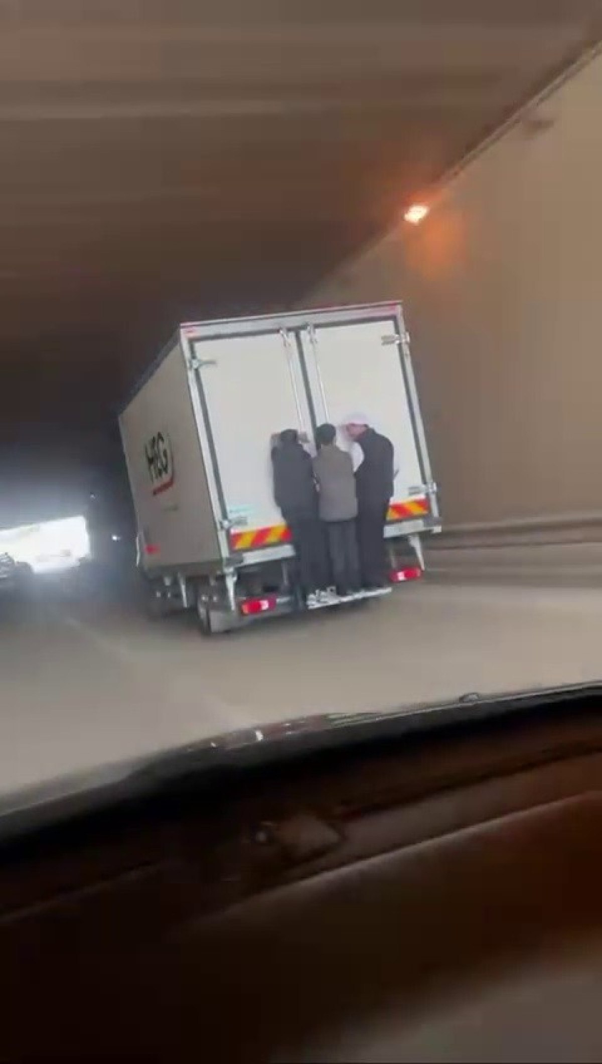 Çocukların bu tehlikeli seyahatlerini fark eden başka şoförler, kamyonet şoförüne korna ile ikaz etse de rastgele bir sonuç alınamadı.