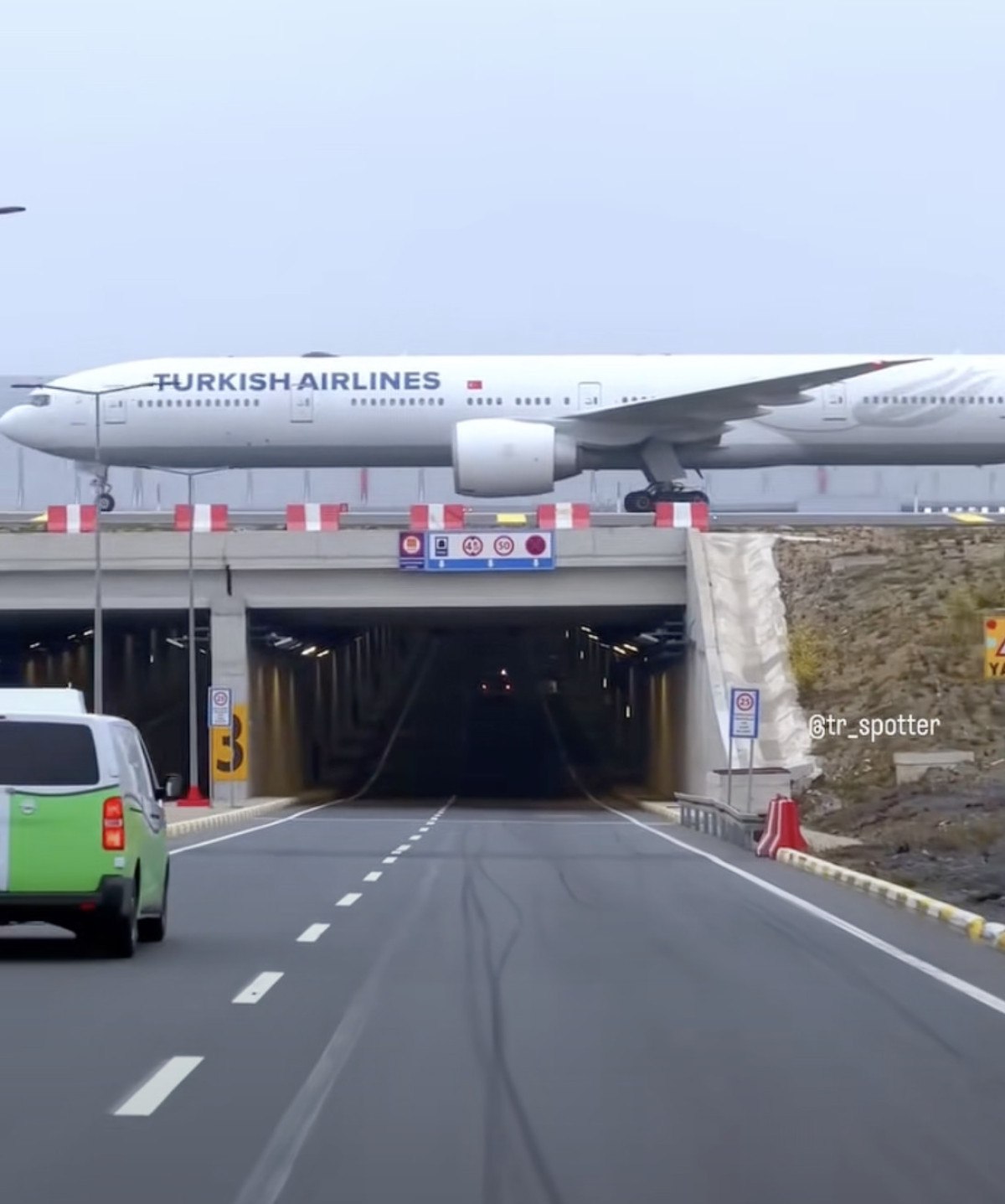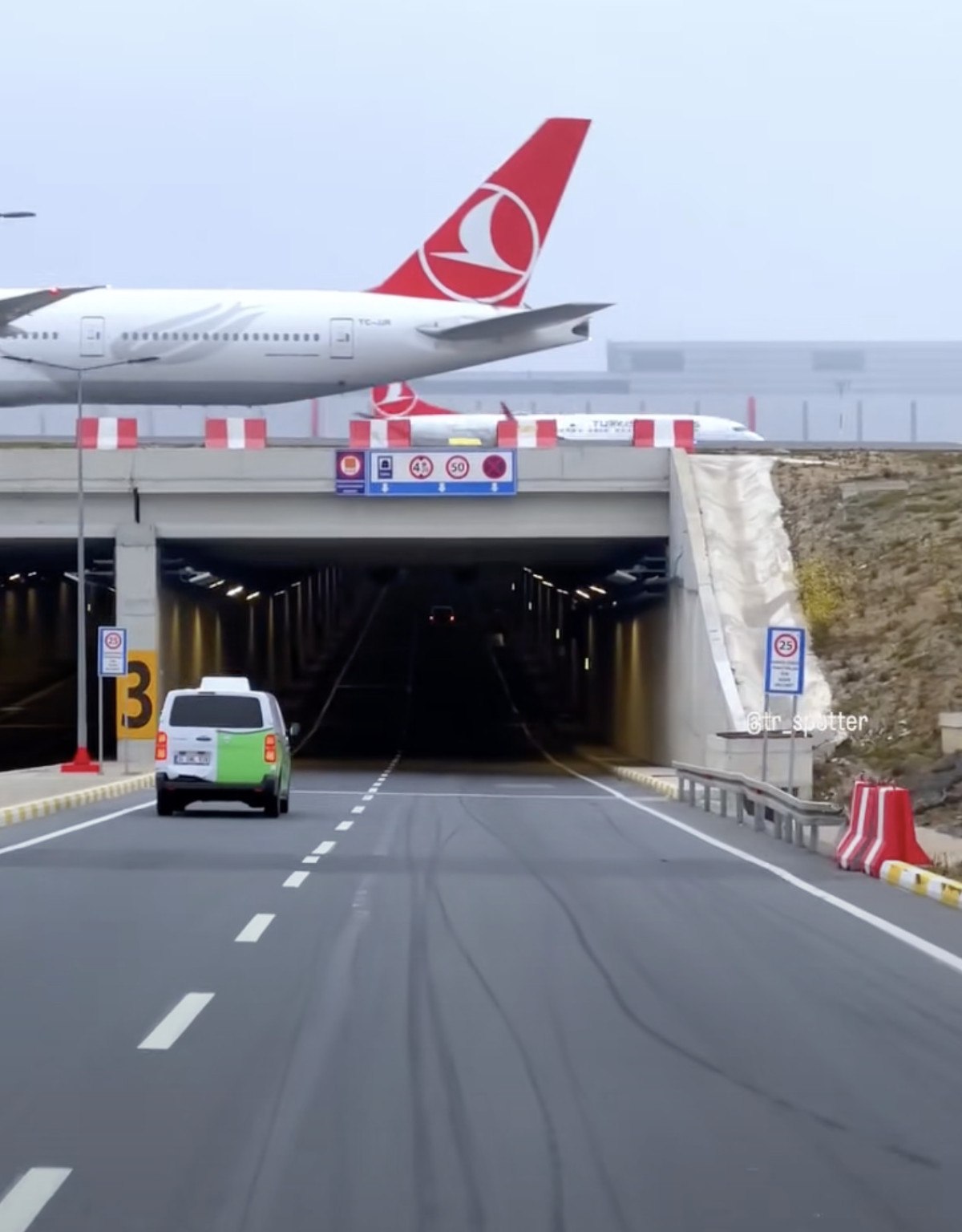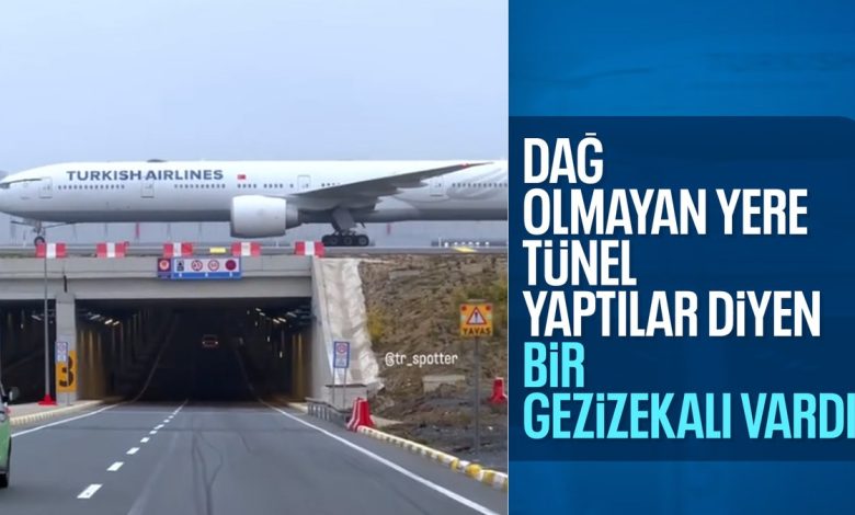 Sosyal medya platformlarında paylaşılan, uçakların tünelin üstünden geçen pistlerde araçların da tünelin içinden yoluna devam ettiği bir manzara beğeni topladı.