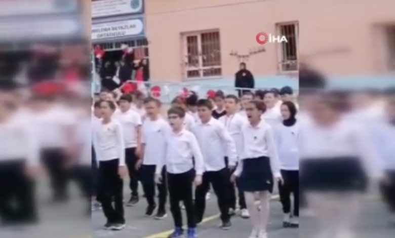 Silivri Kamiloba Beyazlar Ortaokulu’nda çocuklar, 23 Nisan gösterisi yapmak için toplandı.