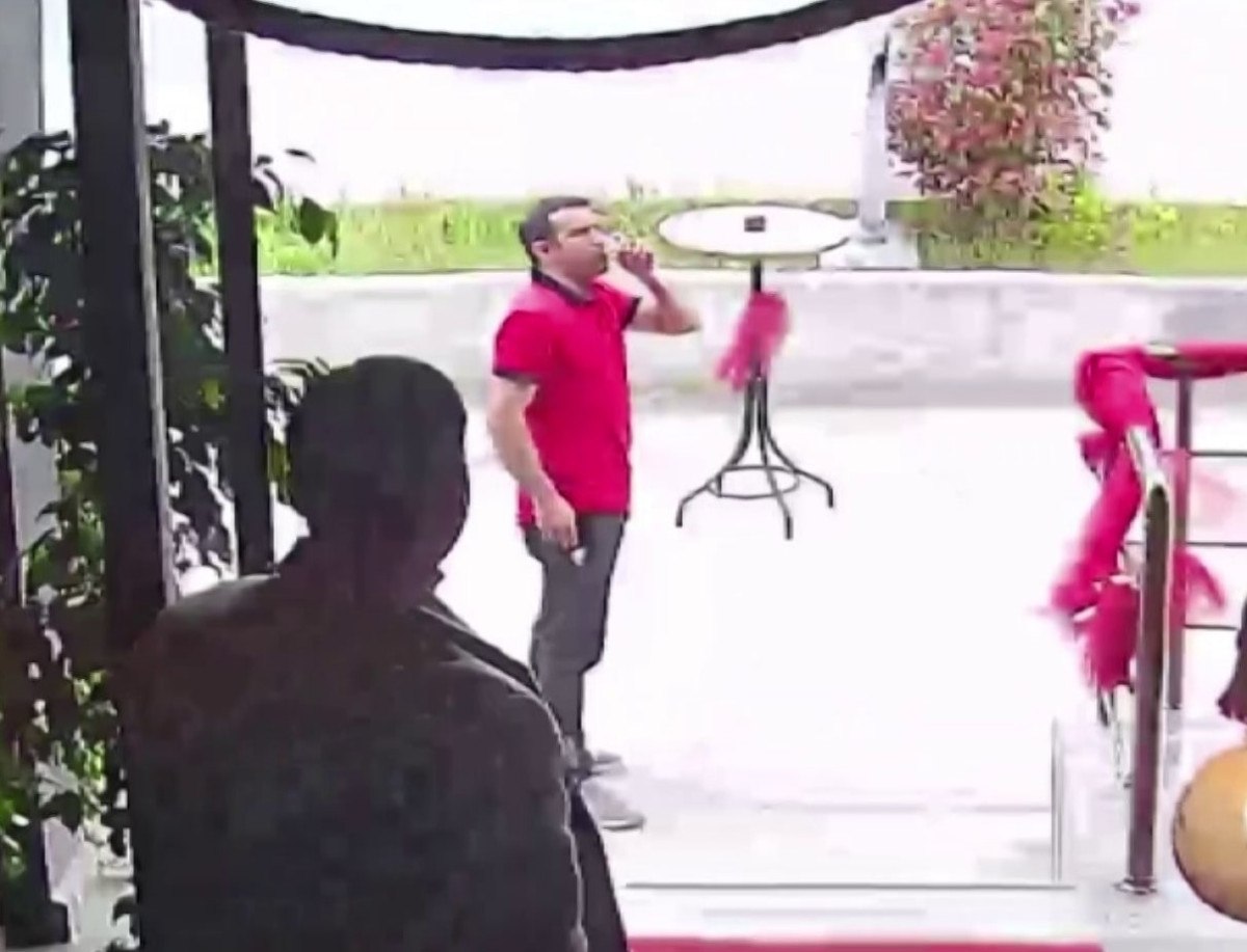 Görüntülerde elindeki bardağı bırakmadan dışarı çıkan vatandaşın burada çayını yudumladığı görüldü.