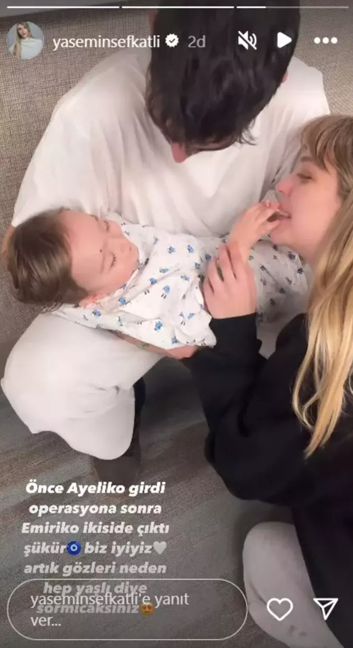 Sosyal medya hesabından oğullarının son durumu hakkında açıklama yapan Yasemin şefkatli, “Önce Ayeliko girdi operasyona sonra Emiriko. İkisi de çıktı şükür. Biz uygunuz. Artık gözleri neden daima yaşlı diye sormayacaksınız.” dedi.