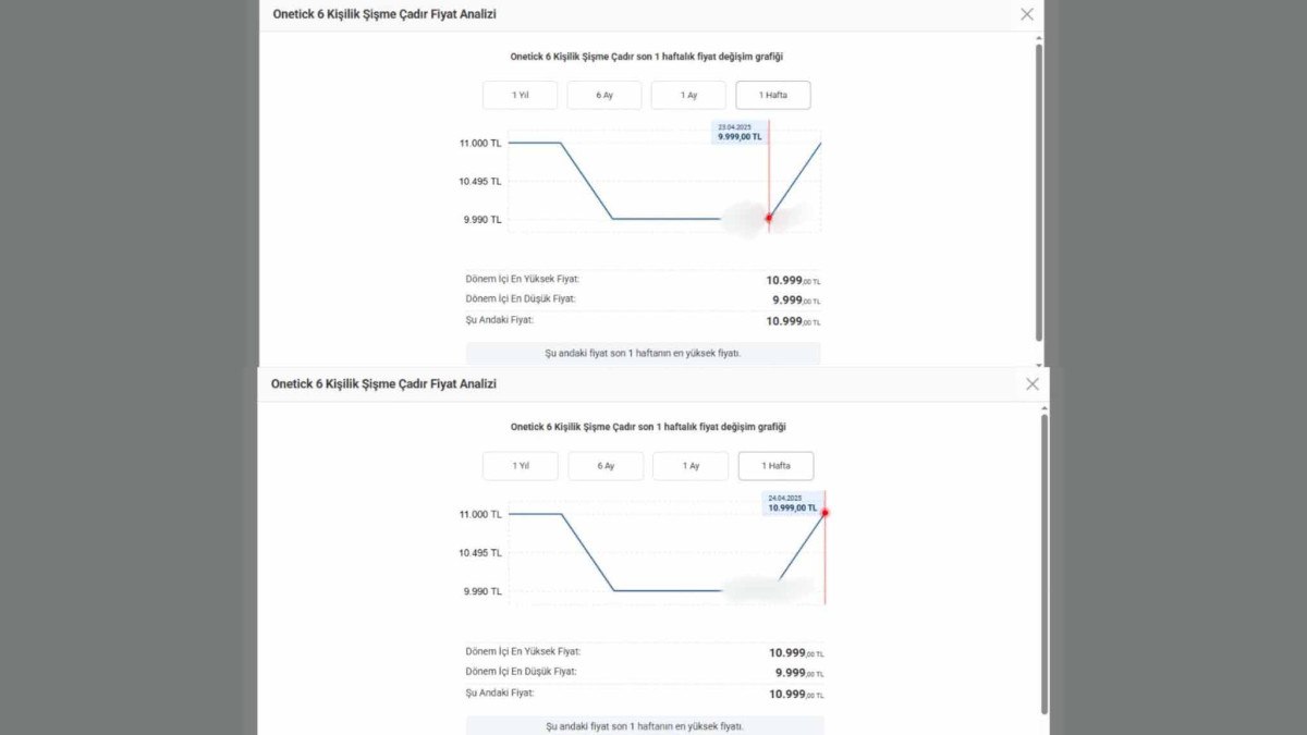 Benzer halde, 23 Nisan’da 9 bin 999 liraya satılan 6 kişilik çadır da zelzele sonrası bin lira artışla 10 bin 999 liraya yükseldi.