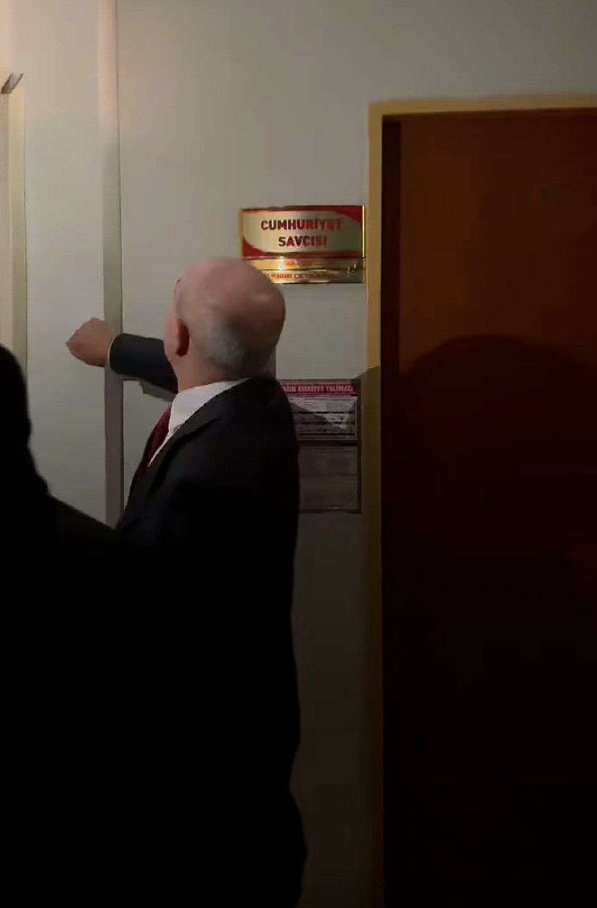 Elindeki fenerle belediyede gezen Akgün, duvarları denetim ettikten sonra dışarı çıktı.