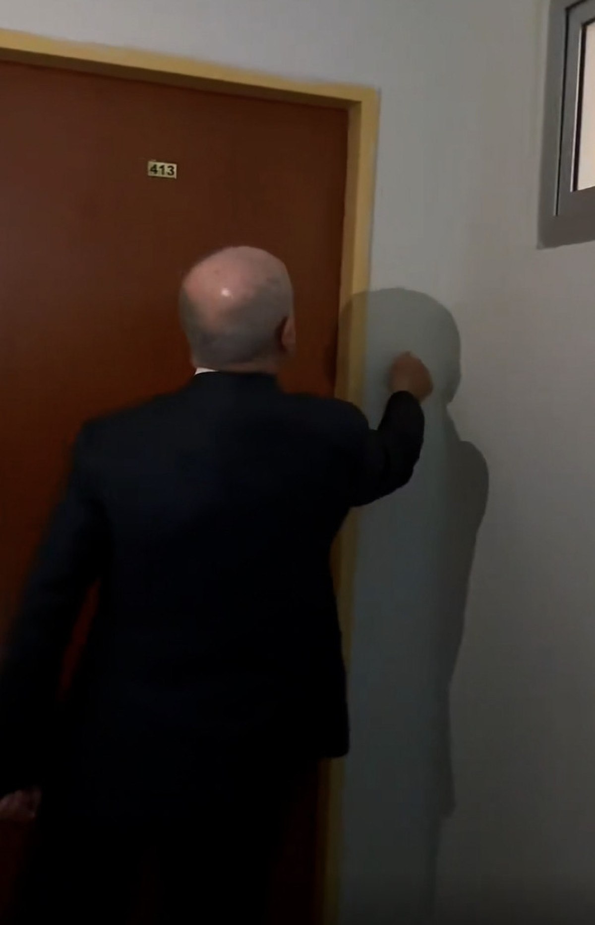 Elindeki fenerle belediyede gezen Akgün, duvarları denetim ettikten sonra dışarı çıktı.