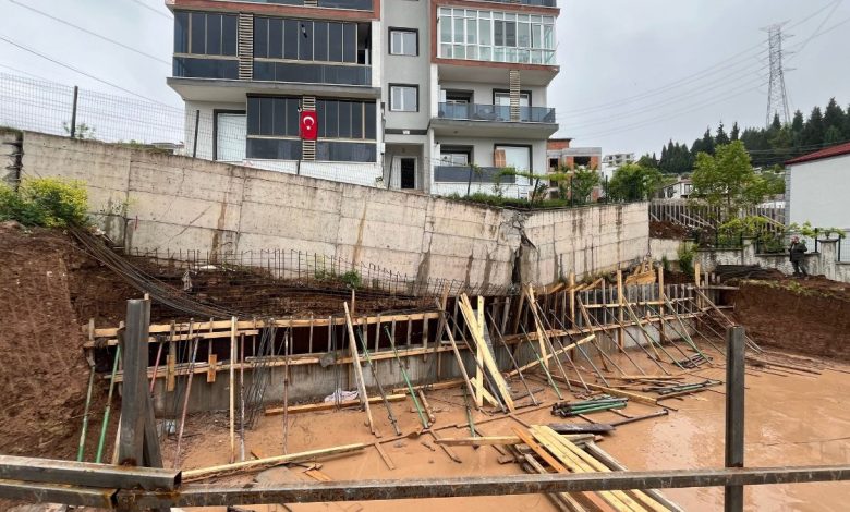 Yapımına başlanan binanın temel alanı yanındaki istinat duvarında kırık oluştuğu, tahliye edilen apartman önünde de çökmeler meydana geldiği görüldü.
