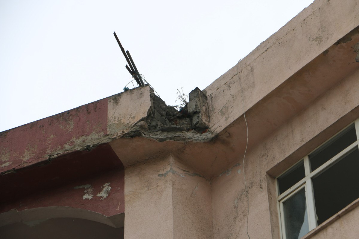 Mahalle sakinleri, çatı katından düşen taşlar nedeniyle bir kişinin hafif yaralandığını belirterek kaygılarını lisana getirdi.