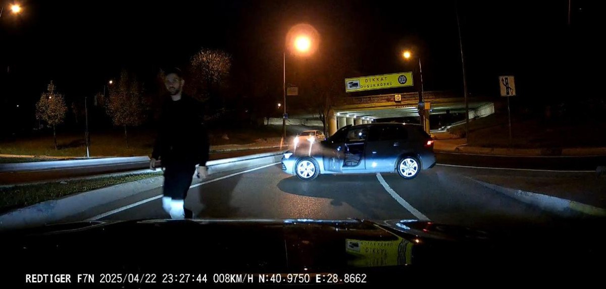 Trafikteki öbür şoförlerin ortaya girmesiyle yol kesen şoför olay yerinden ayrıldı.