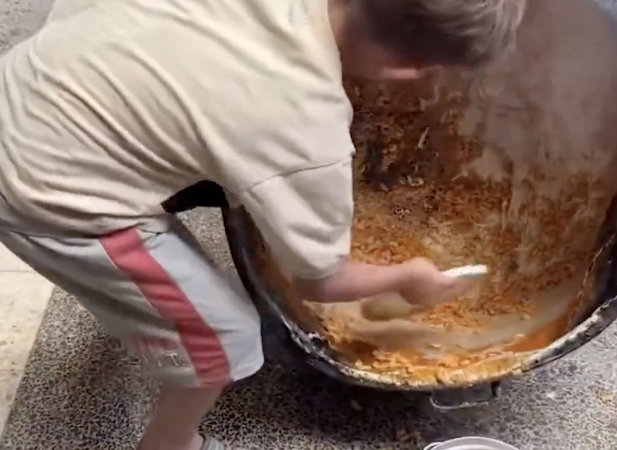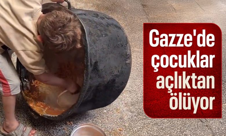 Gazze’de yemek dağıtılan anlardan birinde, bir çocuğun yemek alma çabası kameralara takıldı.