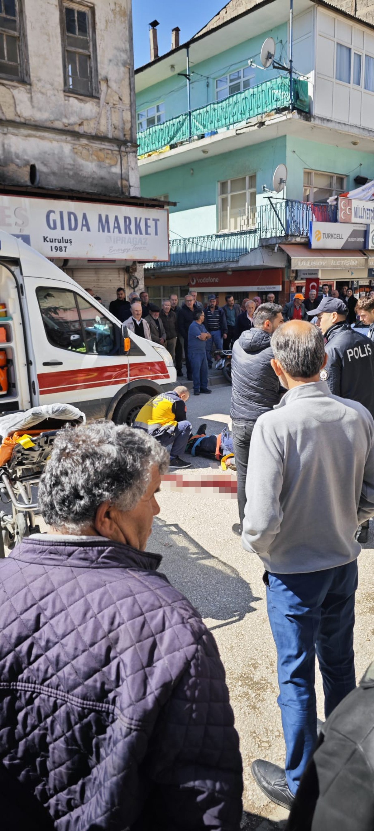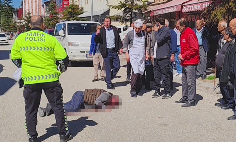 Çarpmanın tesiriyle savrulan yaşlı adam ile motosiklet şoförü yere düştü.