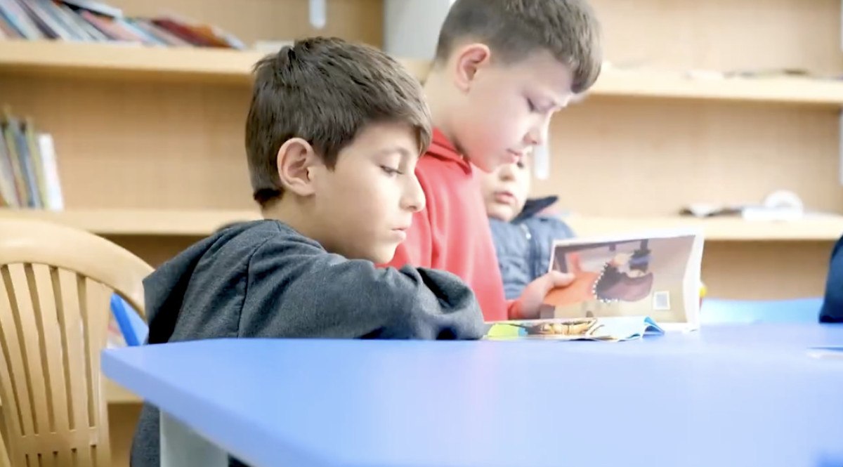 Görüntülerde yer alan okul müdürü Murat Demirci, “16 ay üzere bir müddette eski okulumuzun enkazı kaldırılıp, yenisi çok hoş bir halde yapıldı. Hoş tasarlanmış bir okul. Sarsıntılarda çizik bile olmayacağını düşündüğümüz kalitede bir bina yapılmış.