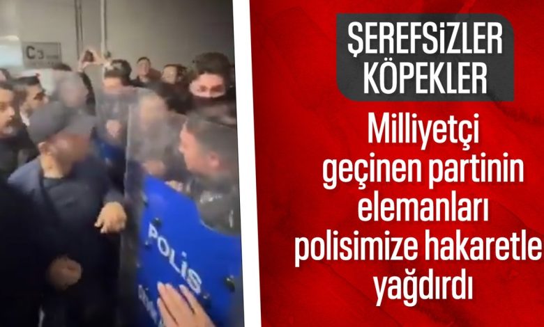 Bununla kalmayan partililer, “adi, “şerefsiz” ve “köpekler” diyerek polise hakaretler yağdırdı.