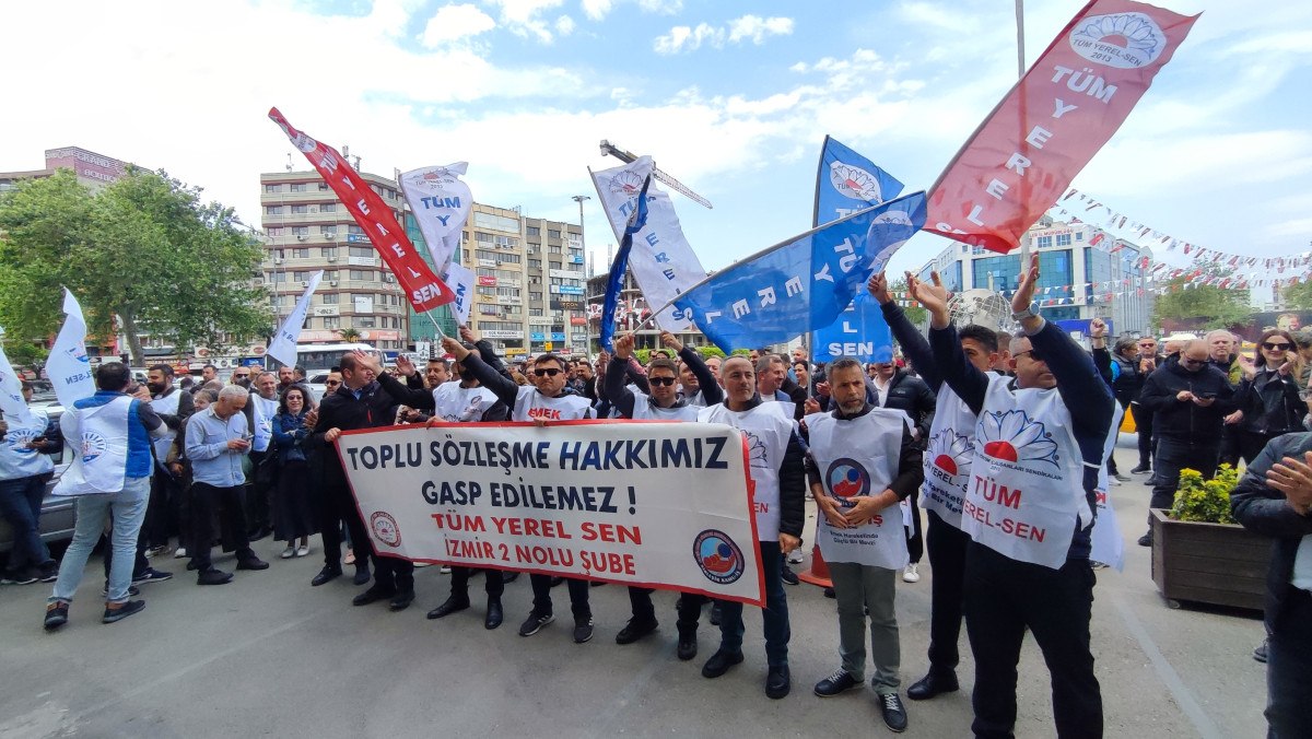Yerel seçimler sonrası başta İzmir olmak üzere toplu kontratlarımızı yaşatma ismine gayretimizi daima birlikte verdik. İmzalanan Toplu Kontratlarda küçük bir nefes aldık derken artık de elde ettiğimiz kazanımlar takside bağlanmaya çalışılmaktadır. Daha evvel de bu meydanlarda haykırdığımız üzere tekrar haykırıyor tekrar söylüyoruz.