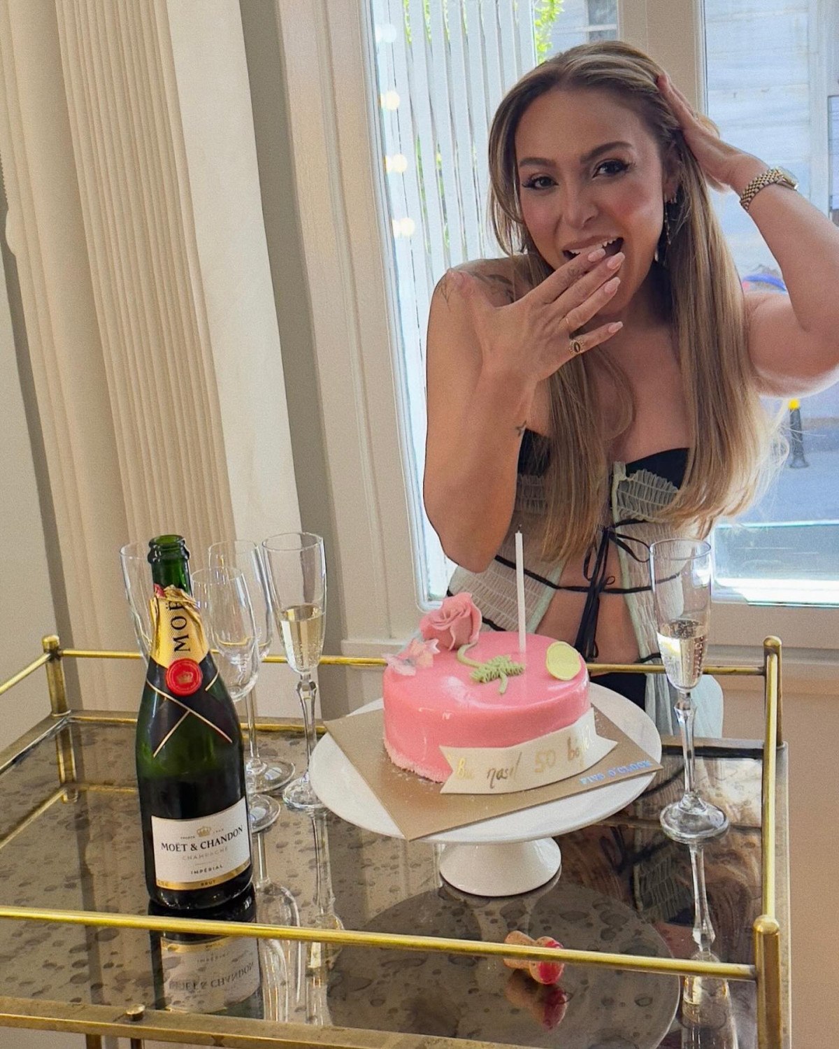 Ünlü isim, yeni yaşını arkadaşlarıyla birlikte meskeninde kutladı. Sali, siyah kot pantolon ve tül ayrıntılı bir büstiyer ile peş peşe poz verdi.