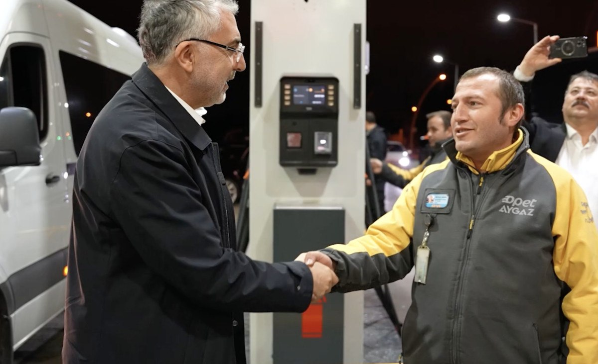 Pursaklar ilçesinde de ziyaretlerde bulunan Bakan Işıkhan, bir akaryakıt istasyonunu, nöbetçi eczaneyi ve taksi durağını ziyaret ederek, günün birinci saatinde mesaisi başında olan çalışanların 1 Mayıs Emek ve Dayanışma Bayramı’nı kutladı.