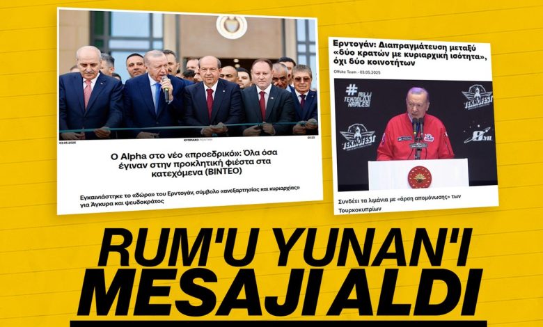 Omegalive kanalı da “Erdoğan, Kıbrıs için tüm görüşmelerin iki devlet temelinde yapılacağını söyledi”, “(KKTC Cumhurbaşkanı Ersin) Tatar meydan okuyup ‘Kıbrıs, Anadolu’nun doğal uzantısıdır’ dedi” ifadelerini öne çıkardı.