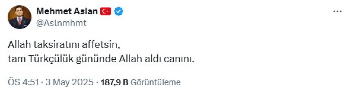 Sosyal medya hesabından Sırrı Süreyya Başkan’ın vefatıyla ilgili açıklama yapan Aslan’ın kullandığı tabirler dikkat çekti.
