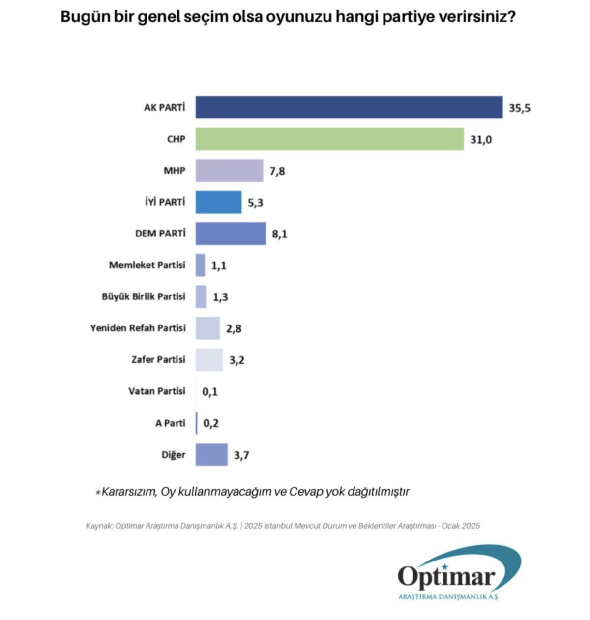 Optimar Araştırma sordu: Bu pazar seçim olsa hangi partiye oy verirsiniz?