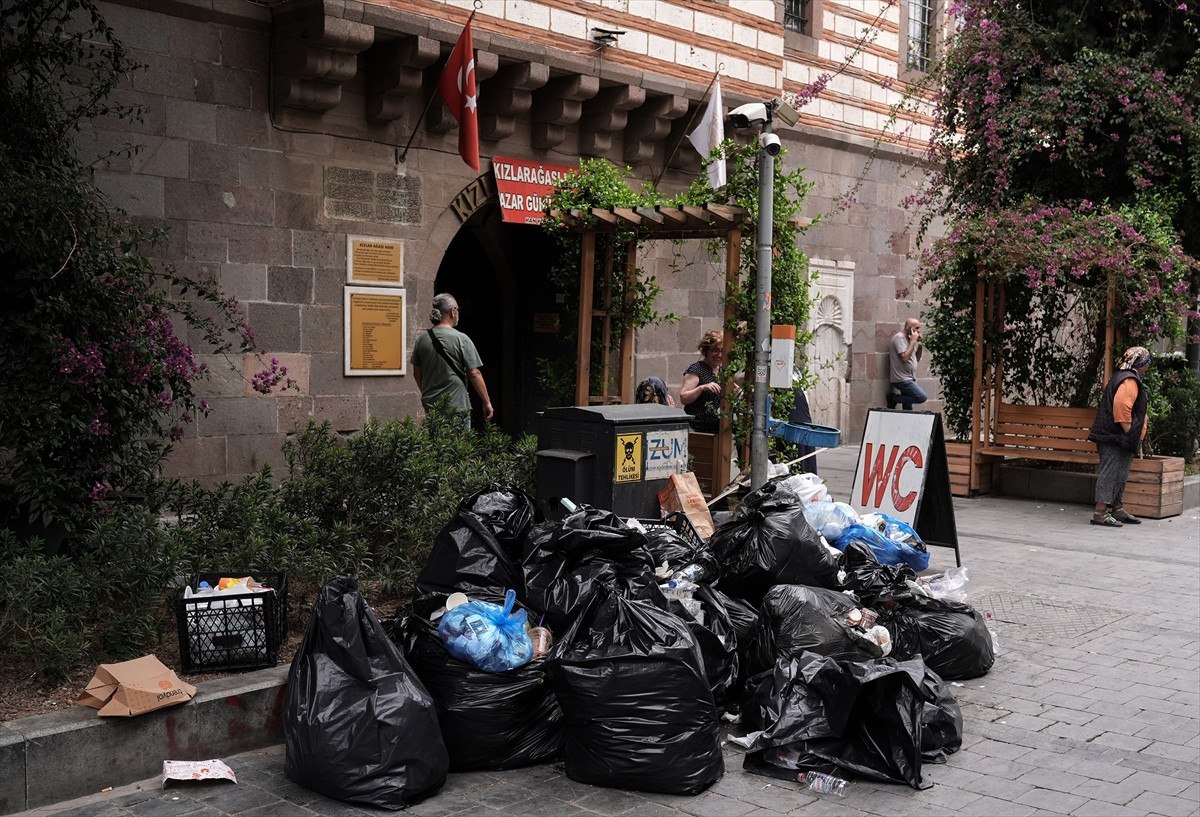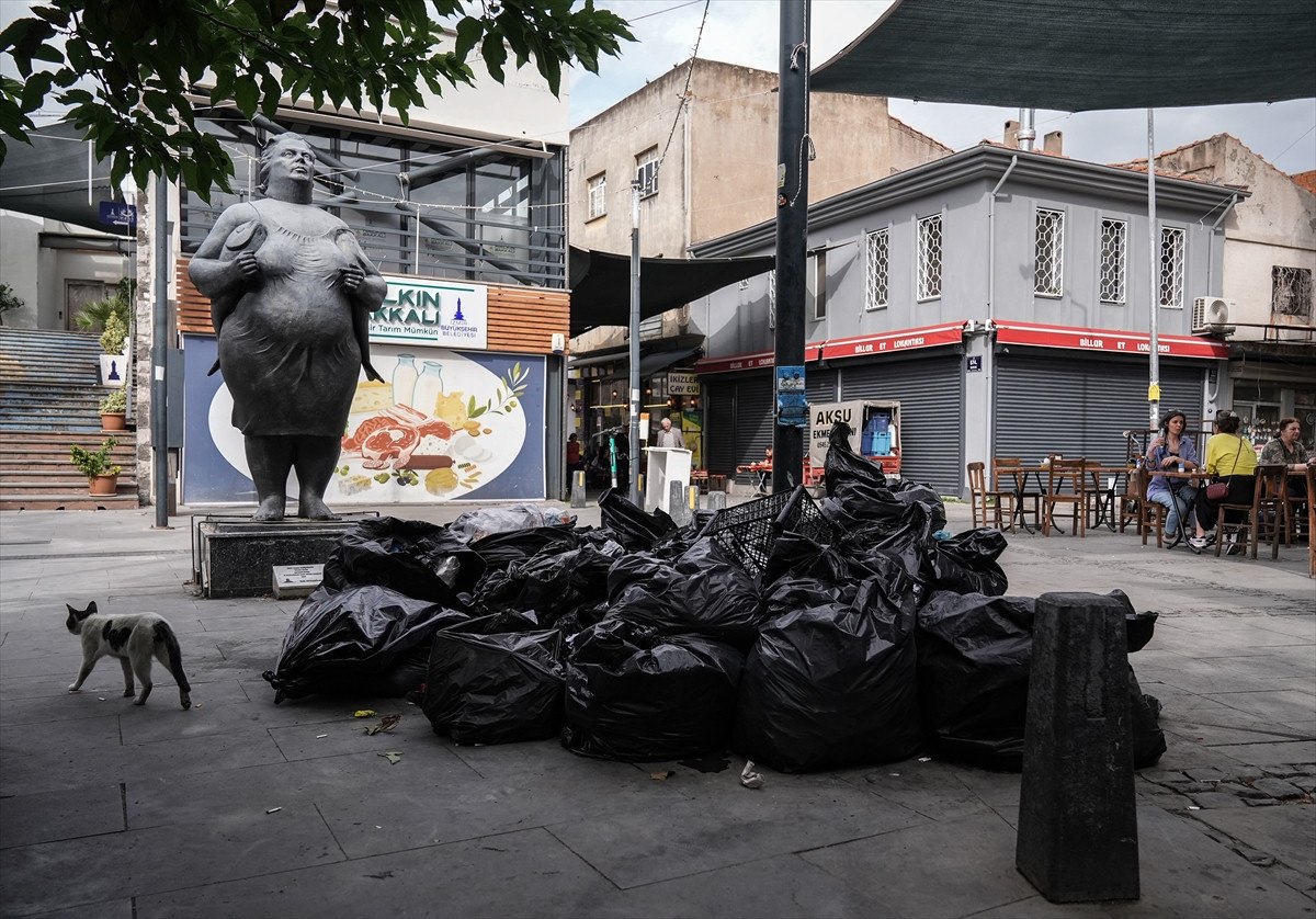 İzmir’in merkez Konak ilçesinde belediye emekçilerinin greve gitmesi sonucunda çöp toplama hizmeti durdu.