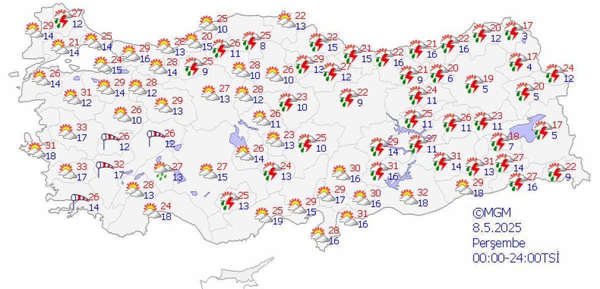 8 MAYIS PERŞEMBE HAVA DURUMU