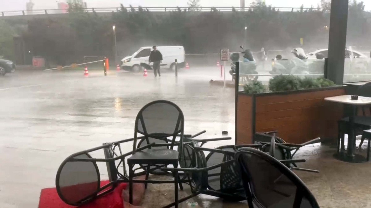Rüzgar nedeniyle kafe ve restoranların sandalyeleri devrildi.