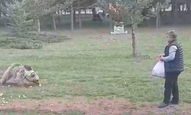 Erzincan’da Çemşit ismini verdiği bozayıyı eliyle besledi